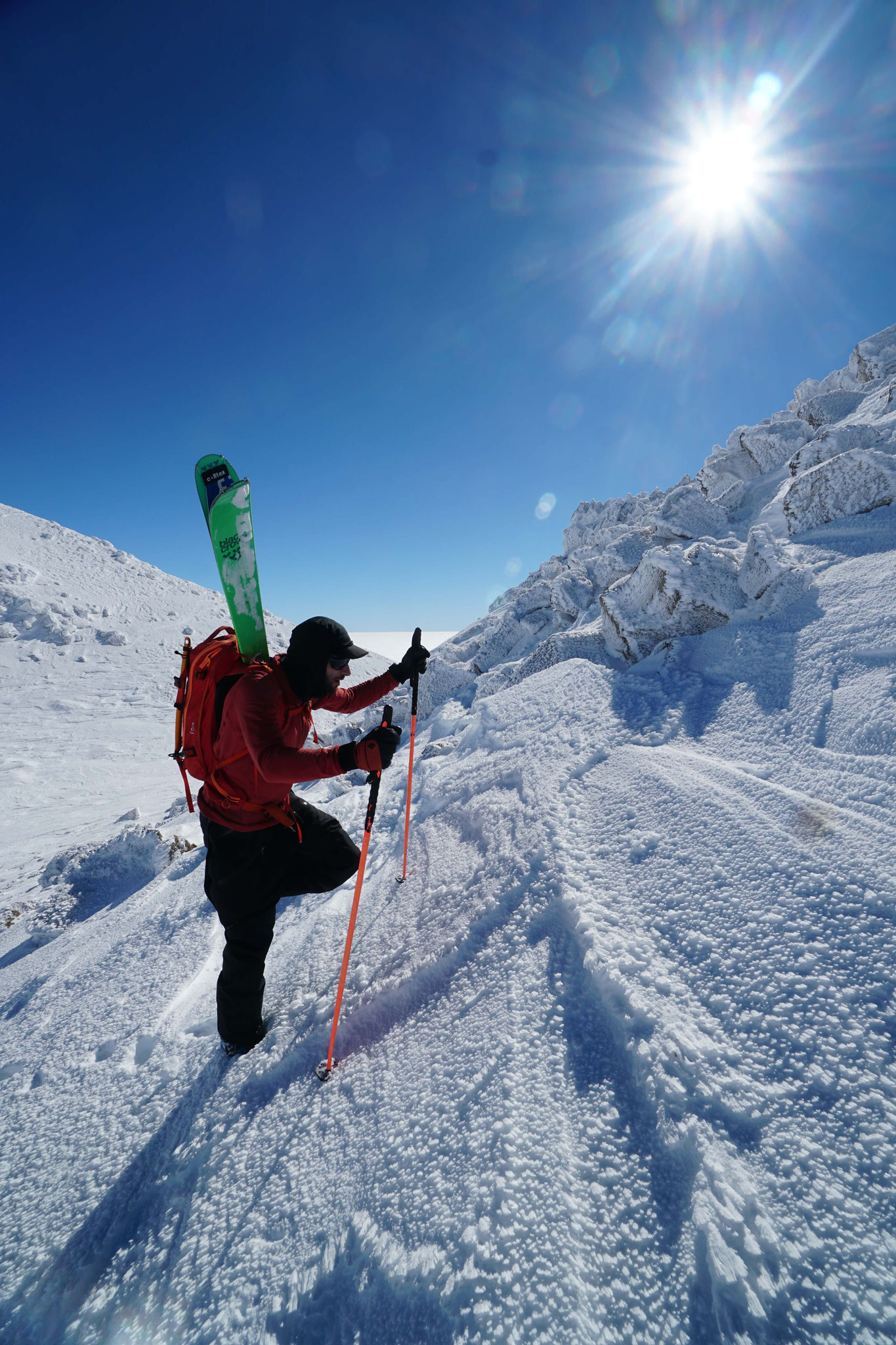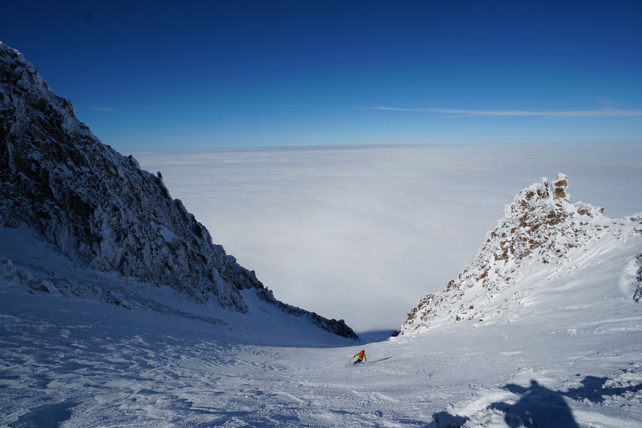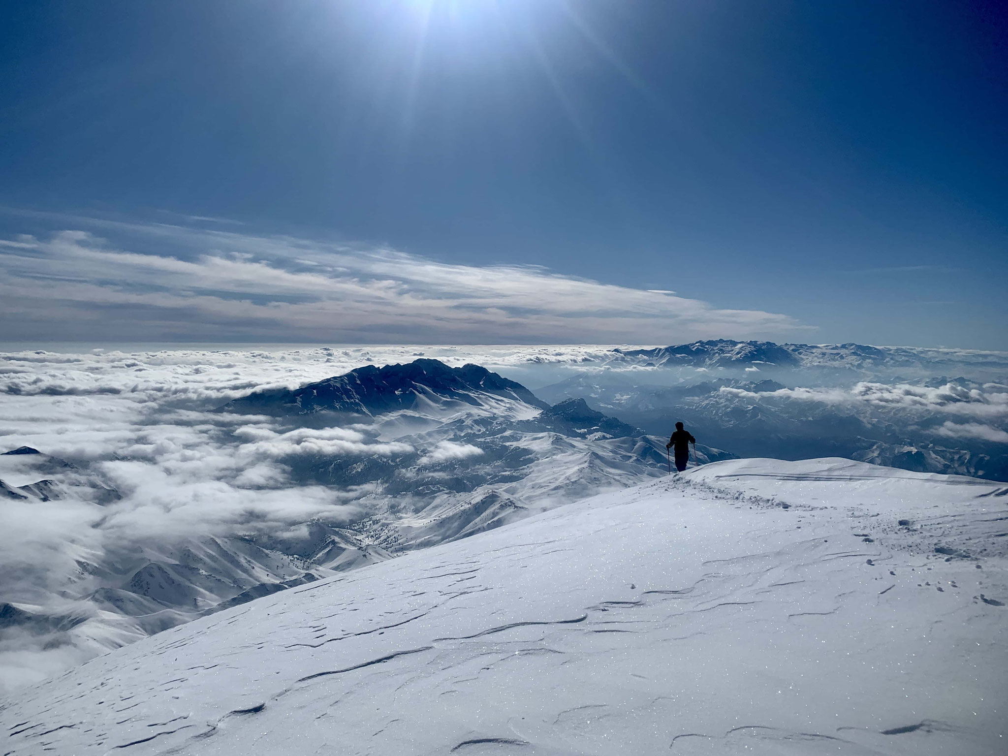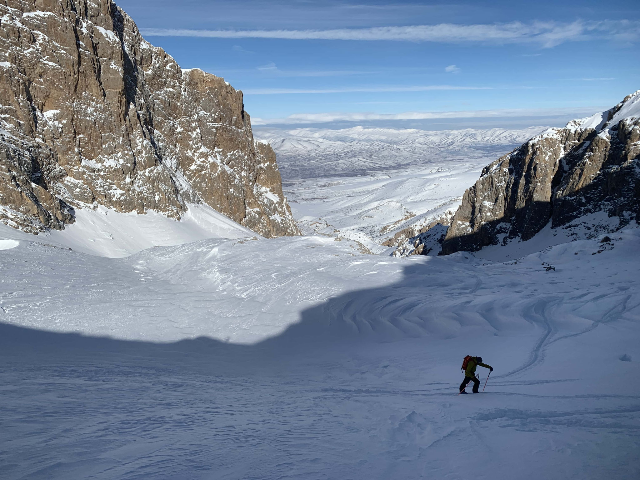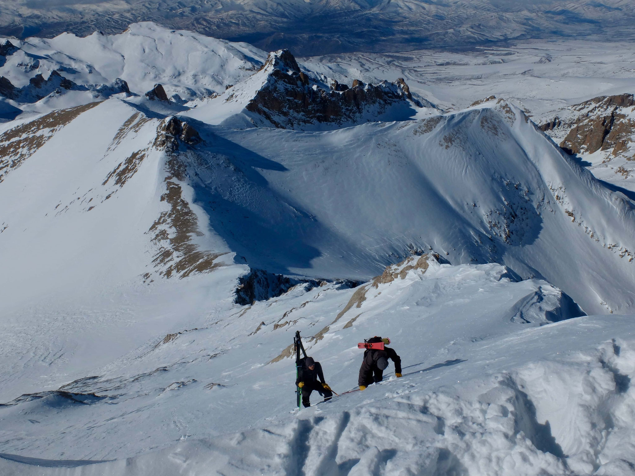 Premier jour de ski, haut en altitude, autour de la station d'Érciyes. On quitte vite le domaine skiable pour grimper sur l'arête Est du sommet. C'est long, très long... On descendra bien avant la fin par un des couloirs nord est. Fin de la journée aux bains turcs.
