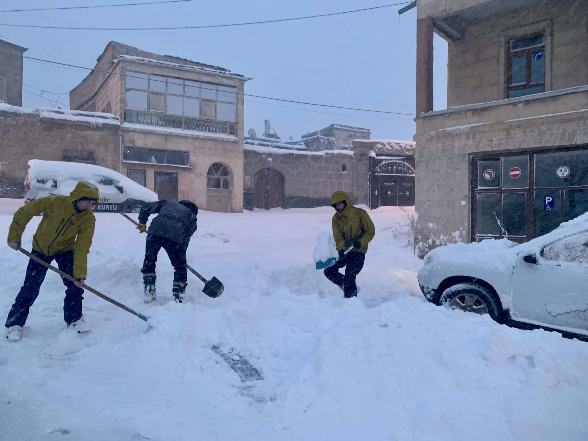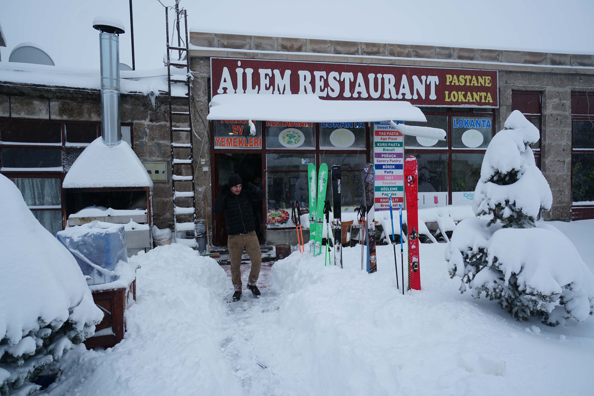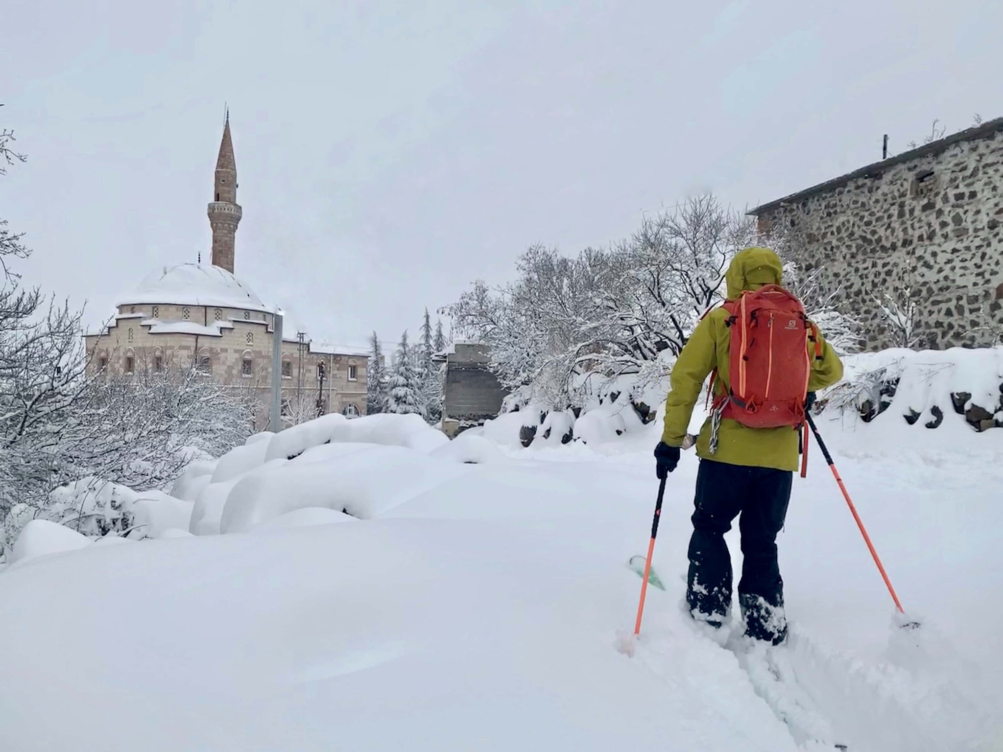 Journée bloquée par les chutes de neige importantes. On skie entre les villages, au son du muezzin et des baclava qui nous appellent. À la rencontre des habitants, c'est ca qui fait un voyage haut en couleurs.